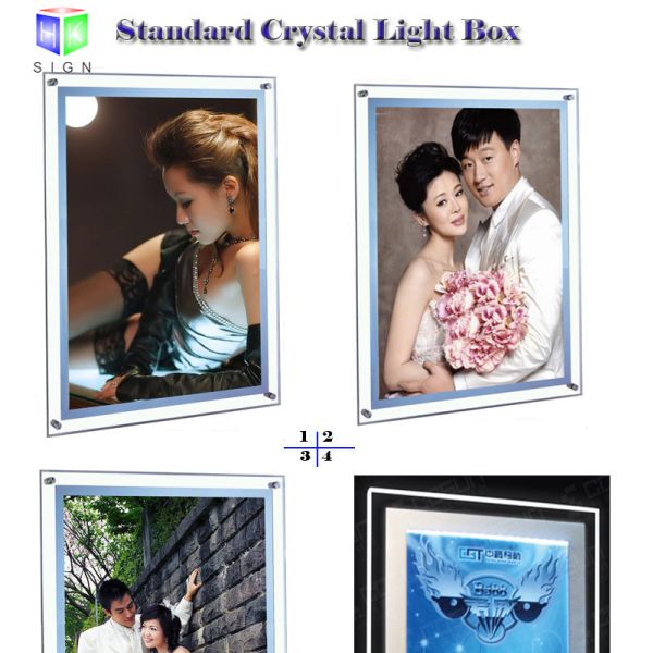 Acrylic indoor Advertising Crystal Led Light Box For Picture Frame Display